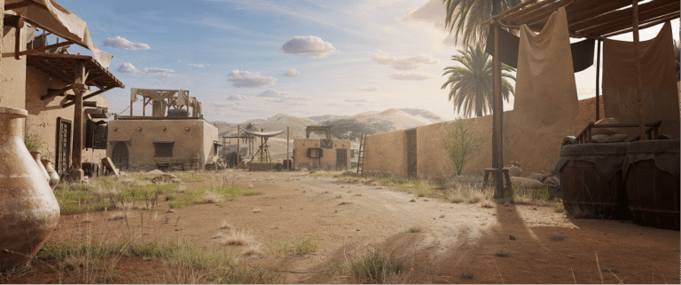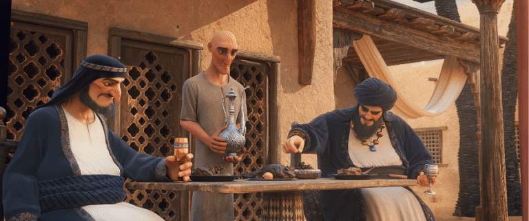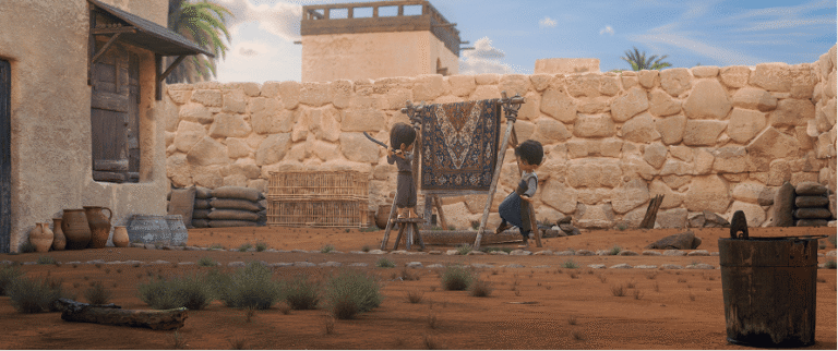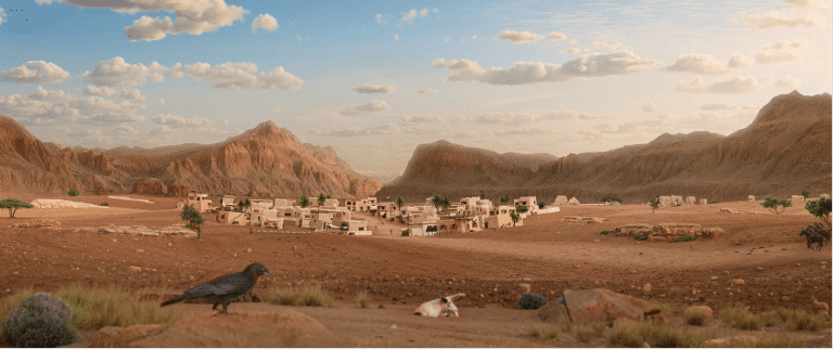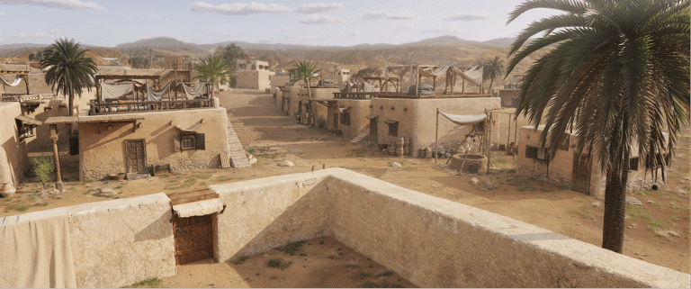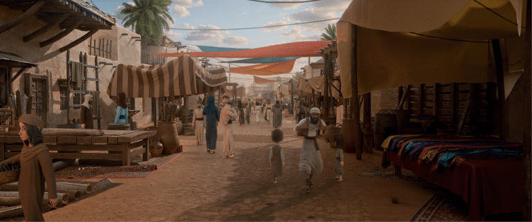 Usfân bölgesinde yer alan küçük köyler, o dönemde sık sık güvenlik sorunlarıyla karşılaşıyordu. Bölgeden geçen Kureyş kervanları dahi silahlı muhafızlar eşliğinde yol alırdı. Filmin açılış sahnesinde dinleyici karakterlerin çıktığı bu köy, dönemin şartlarını ve yaşanan zorluklanı yansıtmak amacıyla tasarlanmıştır.